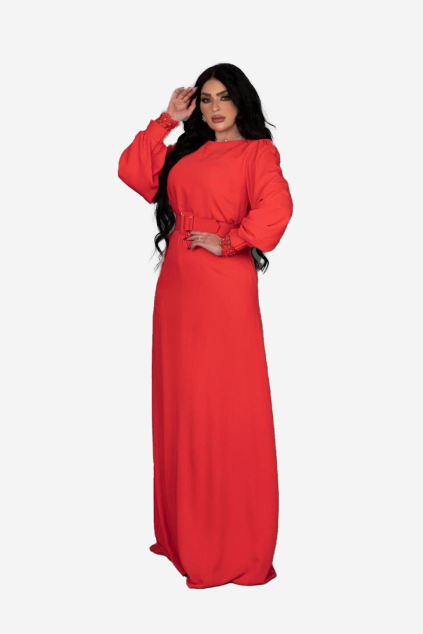 Turn heads with the elegant Scarlet Grace Belted Maxi Dress, designed to exude confidence and sophistication. Crafted from soft, breathable fabric, this full-length dress features dramatic puff sleeves and a matching belt to accentuate your silhouette. Perfect for evening occasions, formal events, or stylish outings, the vibrant red hue adds a bold touch to your wardrobe.